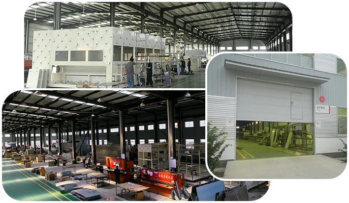 玻璃合片時平壓機前后箱機械手杠桿式托料,(機械式硬限位+活動板吸盤吸附)確保自動合片時玻璃永不錯位。清洗箱 風干箱 風刀等全不銹鋼制作,外形美觀大方,永不銹蝕。